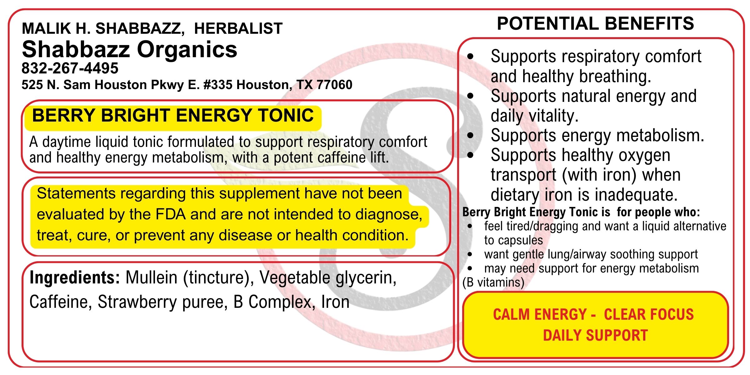 Berry Bright Energy Tonic is a convenient, non-pill liquid blend designed for people who want respiratory comfort support plus a daytime energy lift without relying on multiple products.